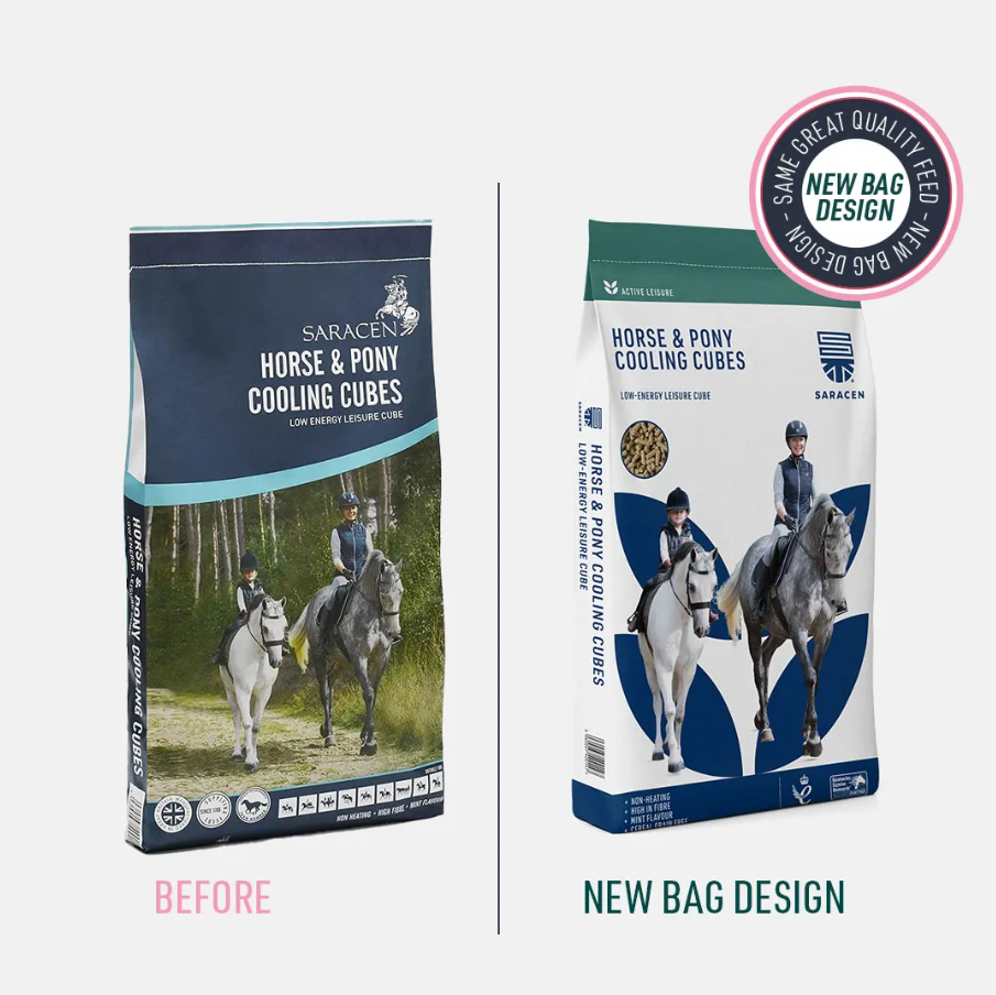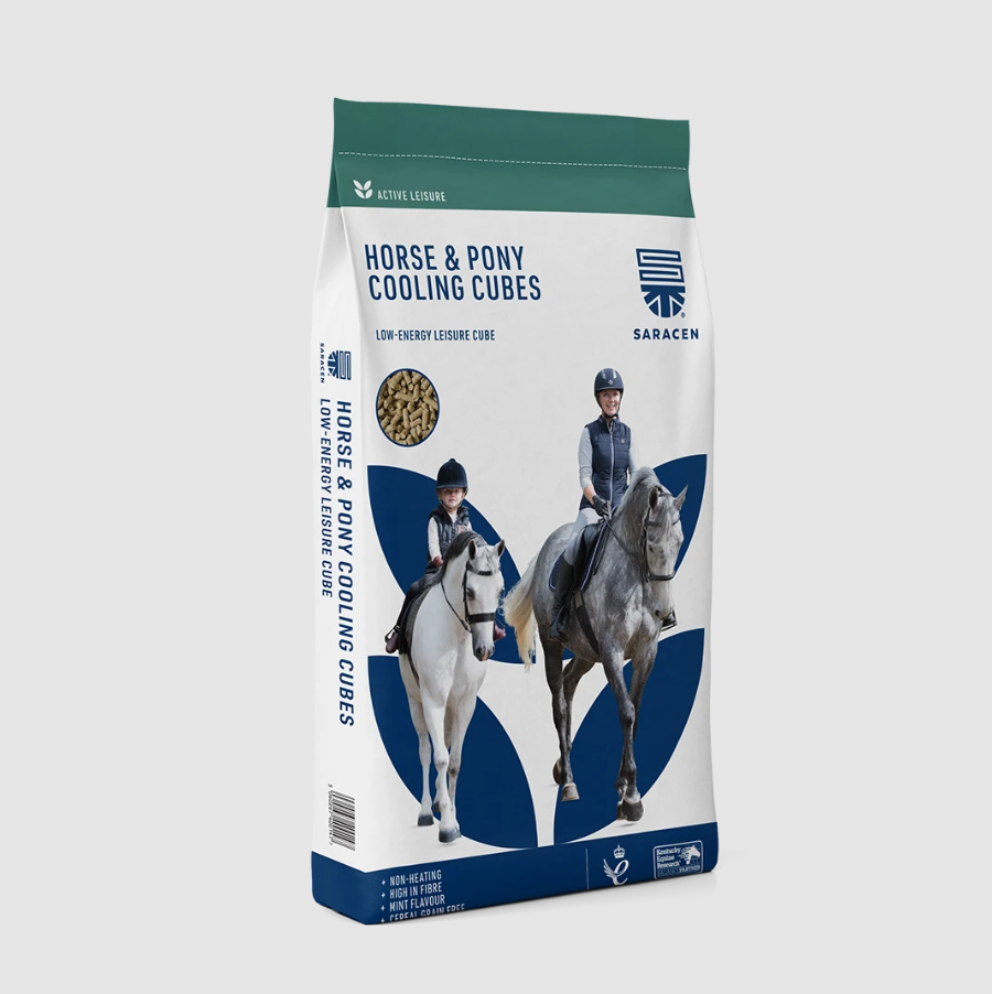 De ‘cooling cubes’ van Saracen is een recreatiekorrel met weinig energie, geschikt voor paarden op rust of lichte training. De korrel werd samengesteld op basis van een graankorrelvrije formule, waardoor alle energie komt uit trage energiebronnen zoals de supervezels en plantaardige olieeën. Dit zorgt ervoor dat de korrel geschikt is voor paarden die uit zichzelf energie genoeg hebben of die sterk reageren op een granen in hun voer.